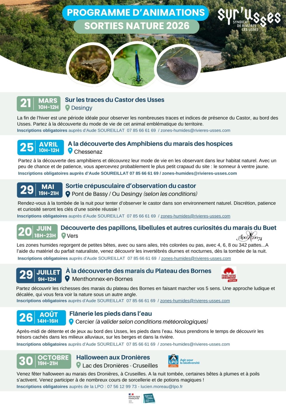 Vous êtes ici : Accueil > Vie pratique > SYR’USSES SYR’USSES Publié : 25 novembre 2022 Mis à jour : 24 février 2026 Programme sorties nature 2026 RETROUVEZ TOUTES LES INFORMATIONS DANS CET ARTICLE